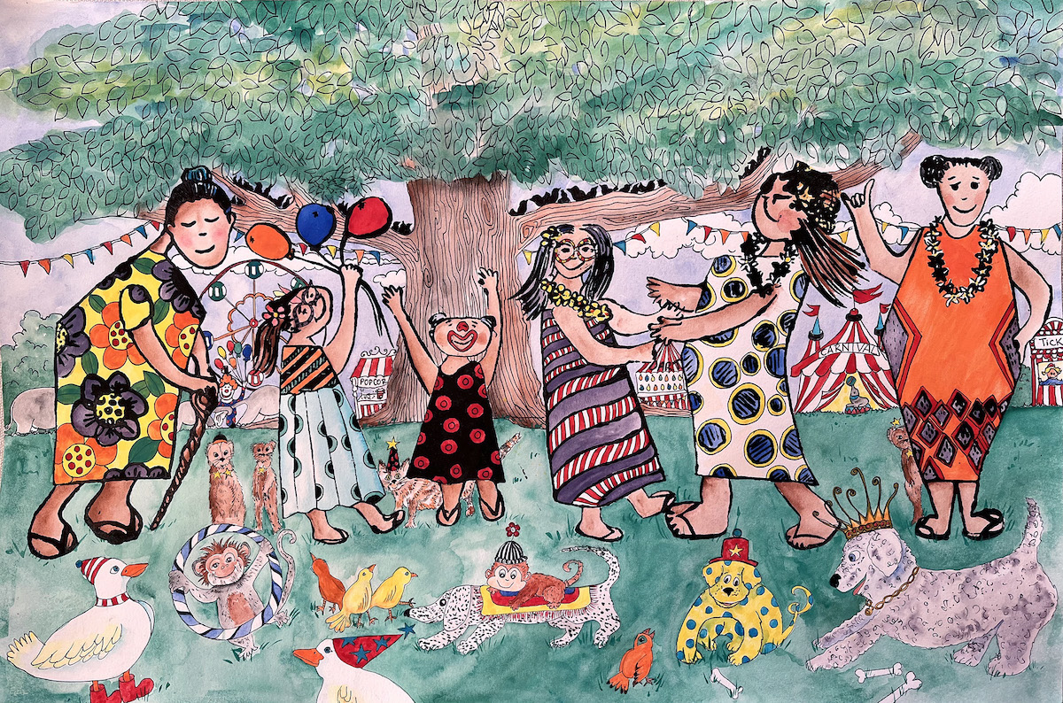 In 2022 I introduced  a mixed-media project to use in classrooms. Students are given a n animal head and then asked to draw a body to go with the head. It is a fun project for 3rd through high school students and even adults.
